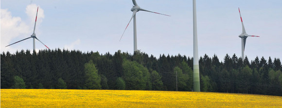 Windräder drehen bei St. Peter im Hochschwarzwald im Wind.