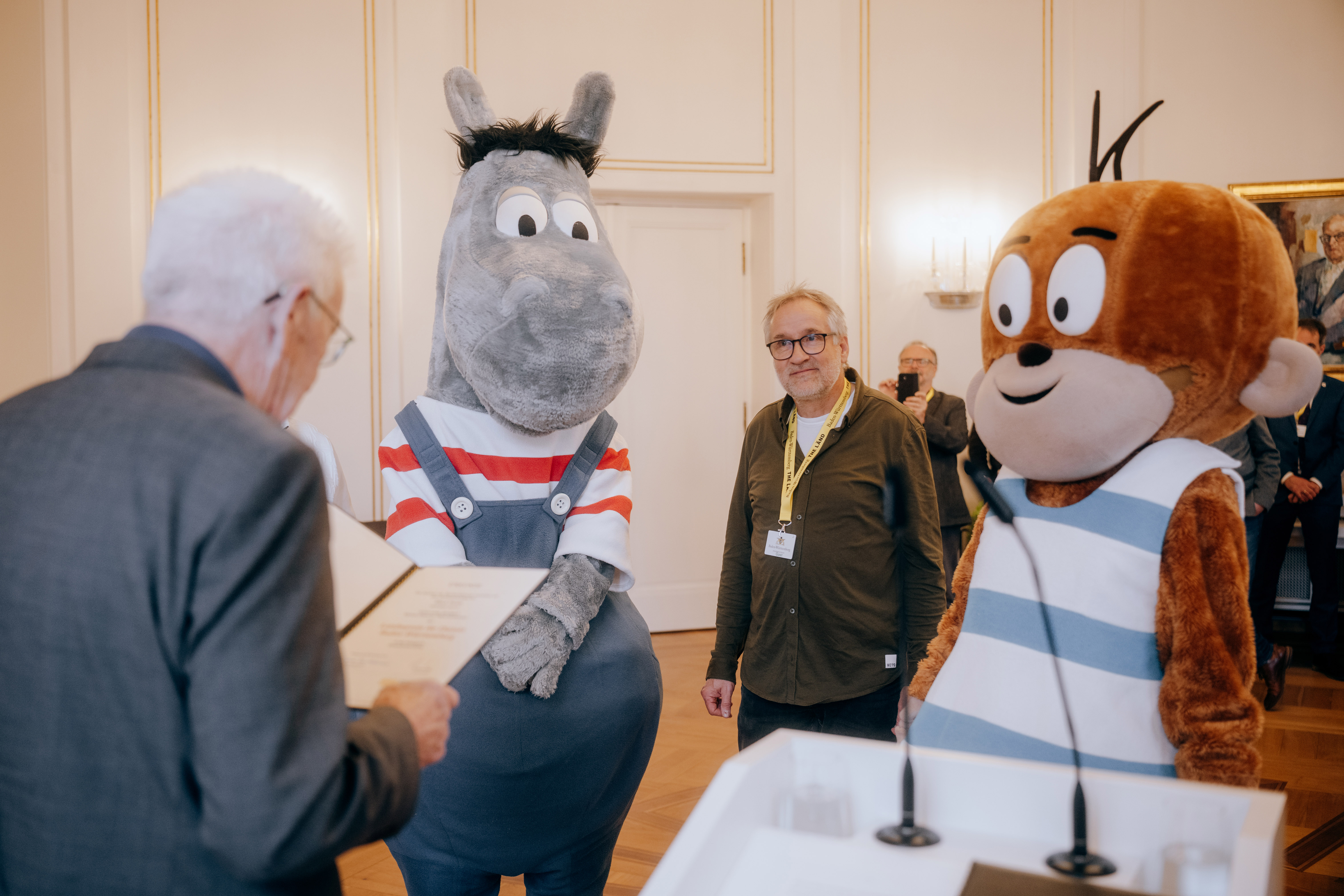 Mit viel Herz, Humor und einer großen Portion Heimatgefühl werden Äffle & Pferdle zu den ersten Dialektbotschaftern Baden-Württembergs. Ministerpräsident Winfried Kretschmann zeichnet die Kultfiguren aus.