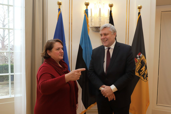 Staatsministerin Theresa Schopper hat den Botschafter der Republik Estland, Alar Streimann, zu einem Antrittsbesuch in der Villa Reitzenstein in Stuttgart empfangen.