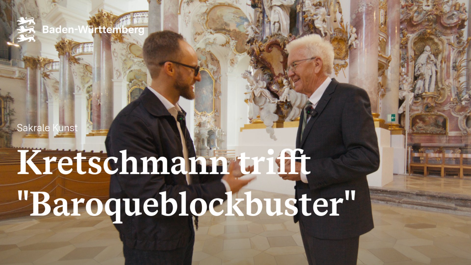 Kunst auf dem Niveau des weltbekannten italienischen Bildhauers Bernini – die gibt es laut Ministerpräsident Kretschmann im Kloster Zwiefalten zu sehen. Mit dem Kunst-Influencer Constantin Pelka, der sich in den sozialen Netzwerken „Baroqueblockbuster“ nennt und dem über eine halbe Million Menschen aus aller Welt folgen, hat er das Bauwerk an der Oberschwäbischen Barockstraße besichtigt. Gemeinsam nahmen sie Skulpturen und Kunstwerke in den Blick, die damals durch die Zusammenarbeit von internationalen Künstlern, Handwerken und Äbten geschaffen wurden.