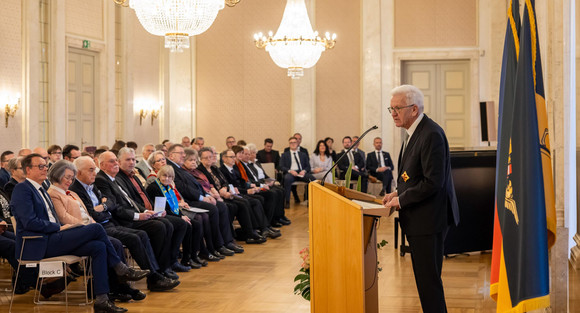 Kretschmann erklärte weiter: „Ehrenamtlich engagierte Menschen bringen Licht in unsere Gesellschaft, die ohne Ehrenamt so viel dunkler und kälter wäre. Sie, liebe Ordensprätendentinnen und Ordensprätendenten, sind leuchtende Vorbilder. Wir können uns glücklich schätzen, dass es so viele Menschen wie Sie gibt, die bereit sind, unser Land zu erhellen, es lebenswert zu machen und für eine gute soziale Temperatur zu sorgen.“